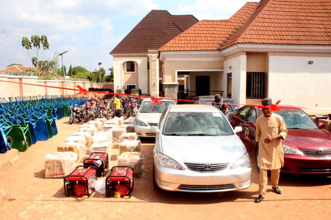 The empowerment exercise featured the distribution of different items including brand new sedan Cars, TVS tricycles, varieties of motorcycles, sewing machines, science equipment, Generator sets, grinding engines, deep freezers, load beds, etc in a view to reduce over dependence and idleness which he described as pathway to irresponsibility.